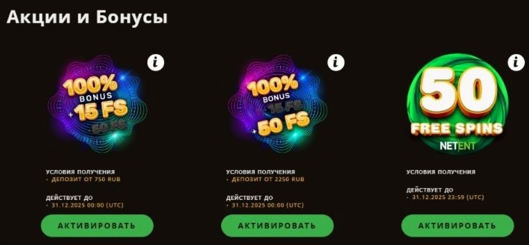 Для каждого бонуса действуют индивидуальные условия отыгрыша. Чтобы ознакомиться с ними, нужно перейти в раздел «Промо», просмотреть обзоры доступных предложений и выбрать интересующий вариант.