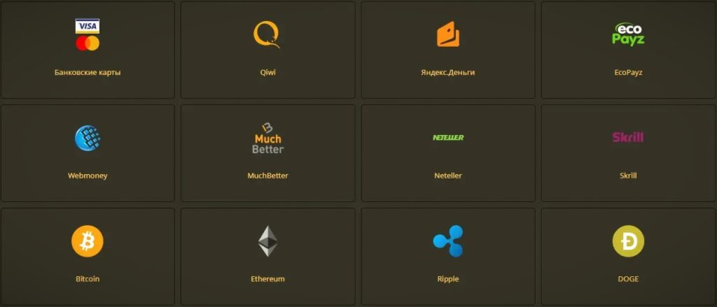 | 💳 Платежные методы | AstroPay, Bitcoin, Maestro Credit Card, MasterCard, Visa, Neteller, Skrill, Dash, ecoPayz, Ethereum, Interac, Qiwi, Yandex Money, Litecoin, MuchBetter, Ripple, Perfect Money, Piastrix, Neosurf, Rapid Transfer, Boleto Bancario |